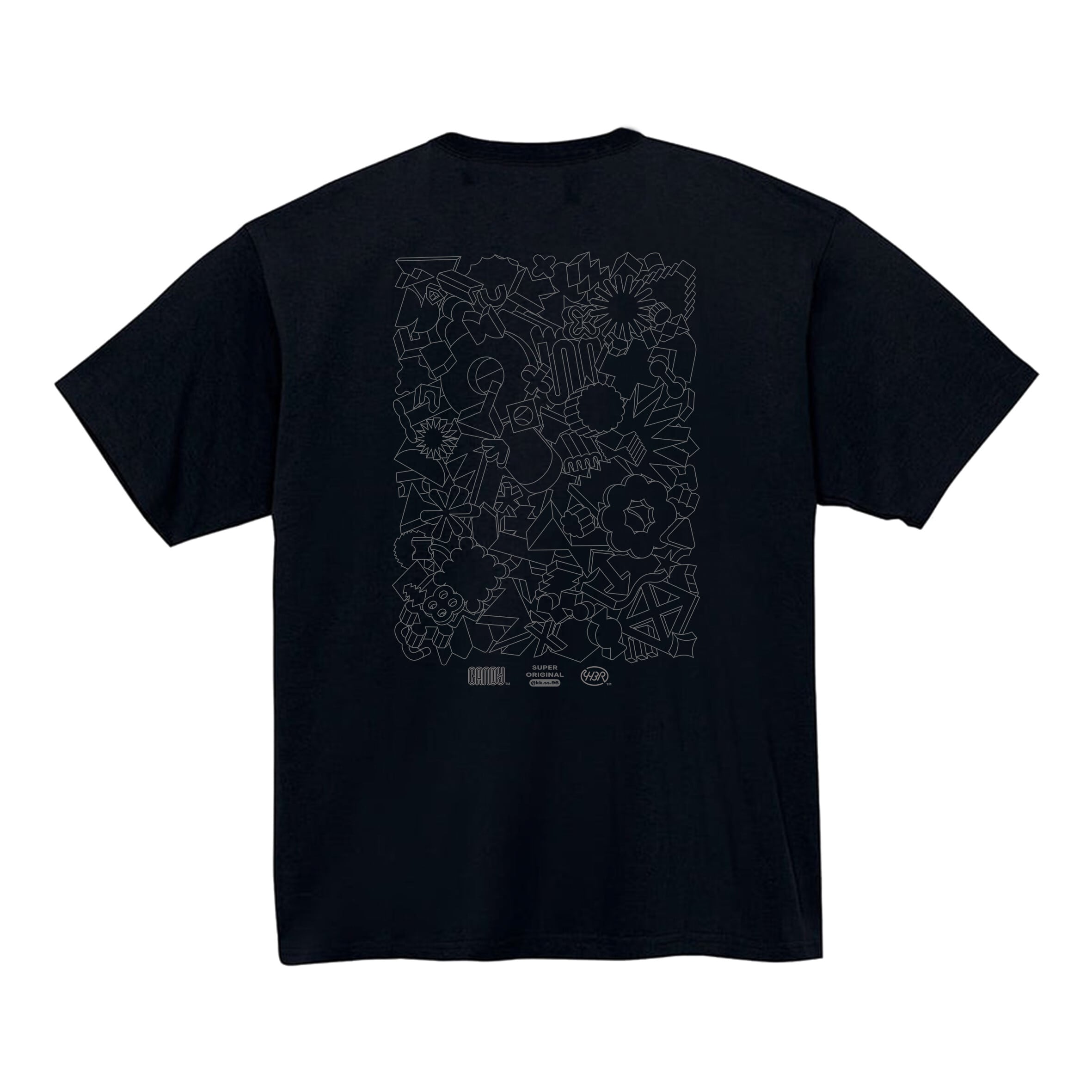 幾何学の塗り絵をテーマとしたグラフィックをシルクスクリーンでバックプリント